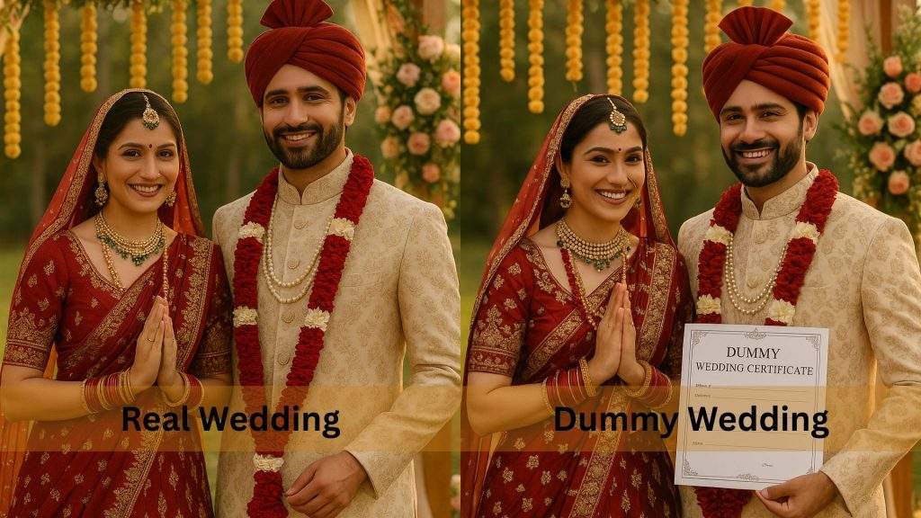 From the haldi ceremony to sangeet nights, bridal entries, pheras, and wedding cake cutting, everything appears and feels authentic. However, neither formal documentation nor a marriage are involved.